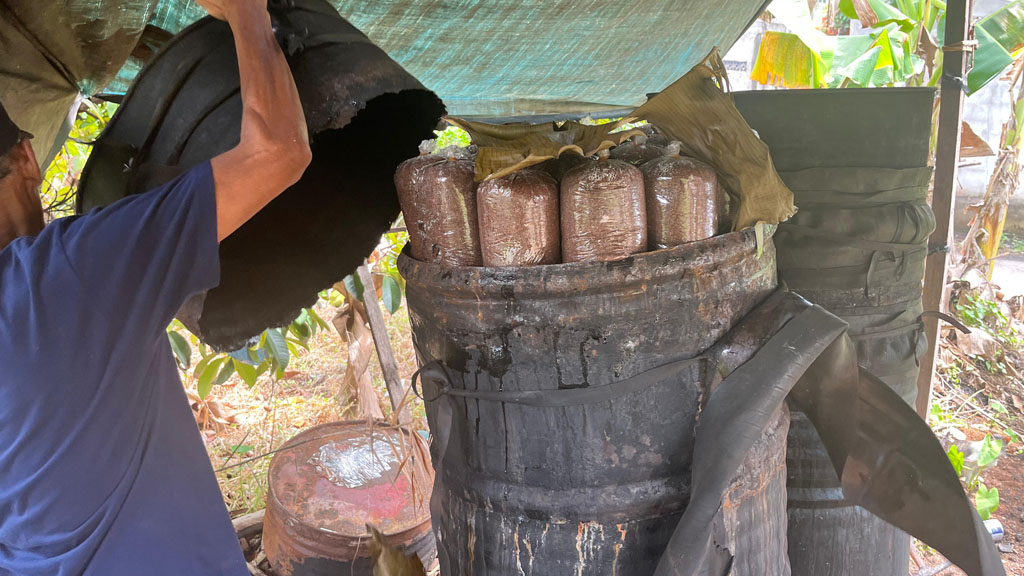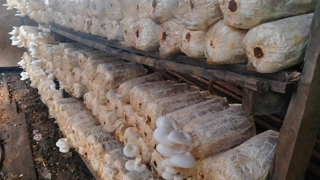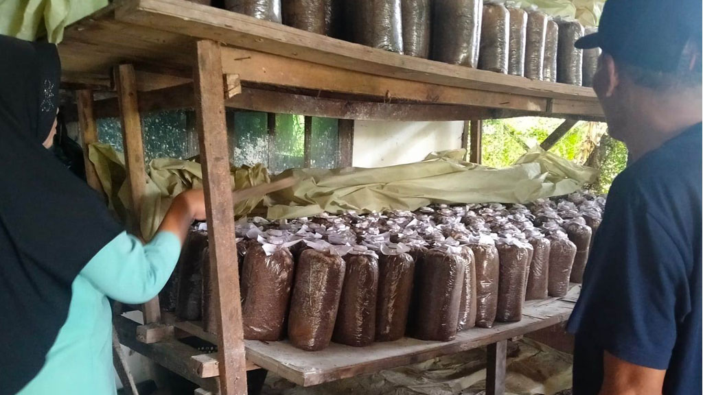 Jamur yang tak terserap pasar, alih-alih dibuang, mereka bagikan kepada para tetangga.
